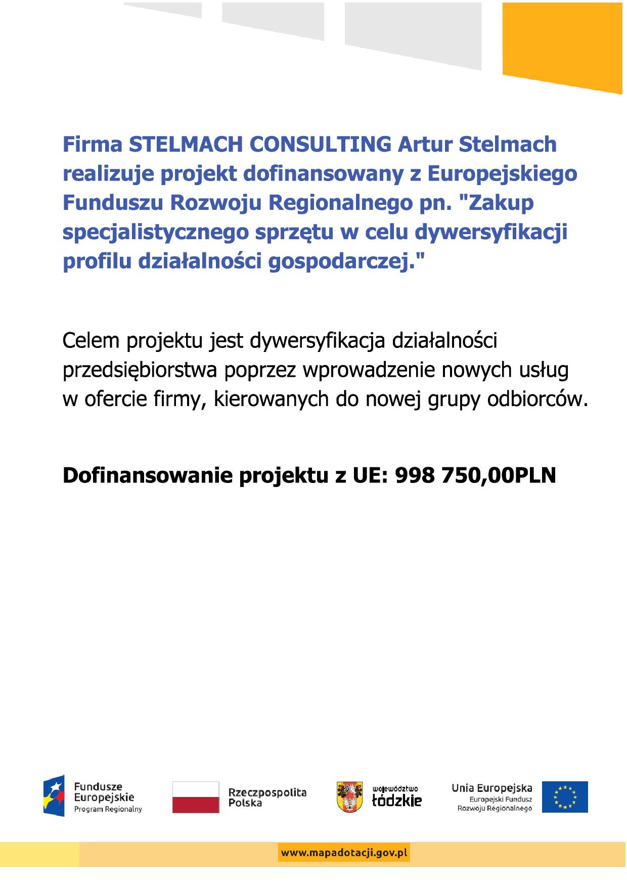 Firma STELMACH CONSULTING Artur Stelmach powstała w kwietniu 2016 roku i od tego czasu prowadzi działalność w sposób ciągły w zakresie doradztwa dla podmiotów publicznych (JST) i prywatnych (MŚP). Główny profil usług dotyczy działalności profesjonalnej, naukowej i technicznej (PKD 74.90).